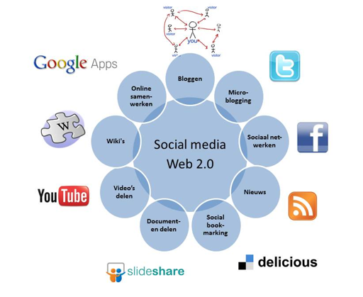 Onder Web 2.0 wordt de transitie van een informatief internet naar een interactief internet verstaan. Het is eigenlijk in de basis de overgang van websites naar platformen. Dezelfde platformen waar social media op drijft.